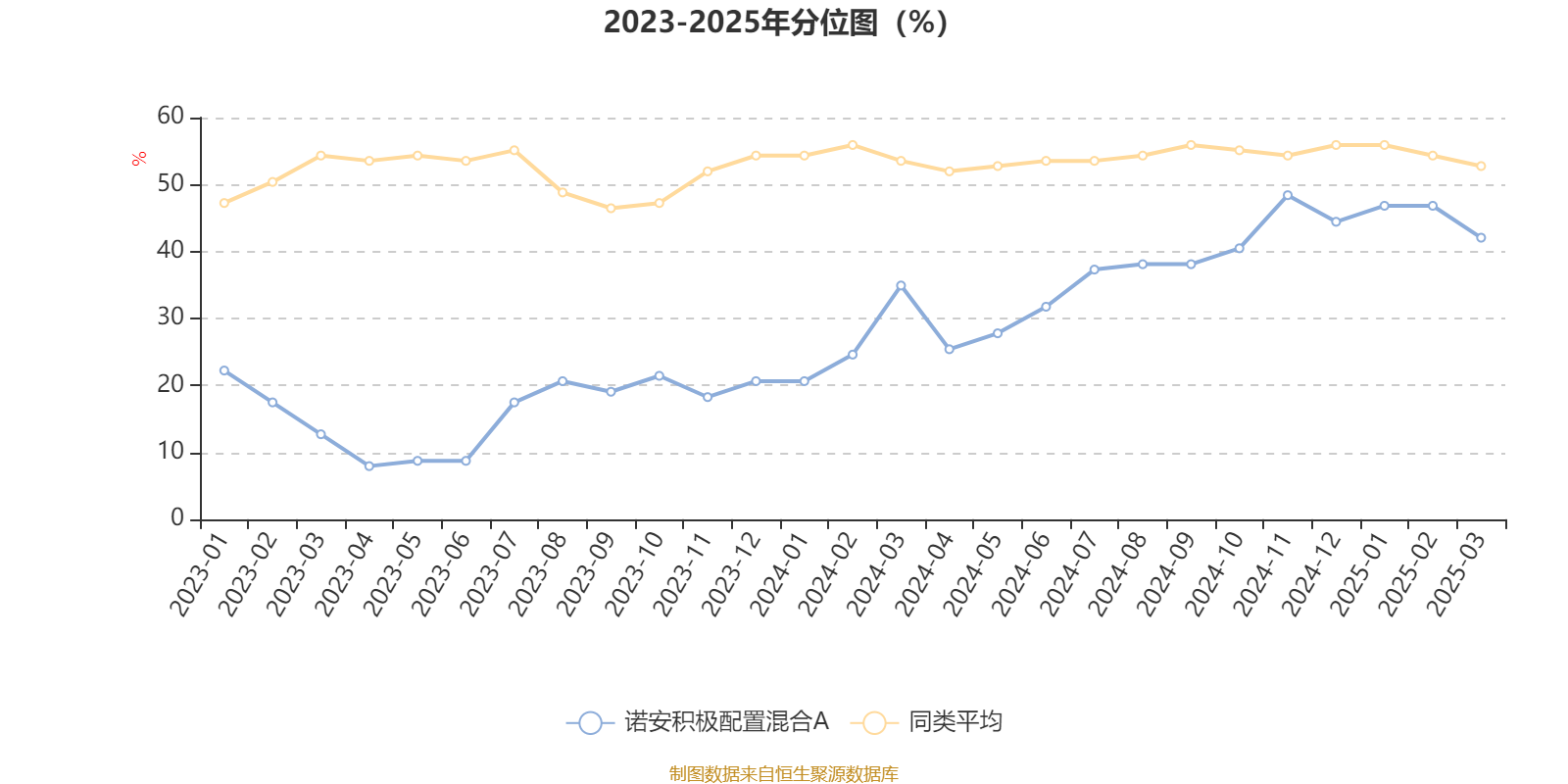 通过所选区间该基金净值增长率分位图,可以观察该基金与同类基金业绩比较情况。图为坐标原点到区间内某时点的净值增长率在同类基金中的分位数。